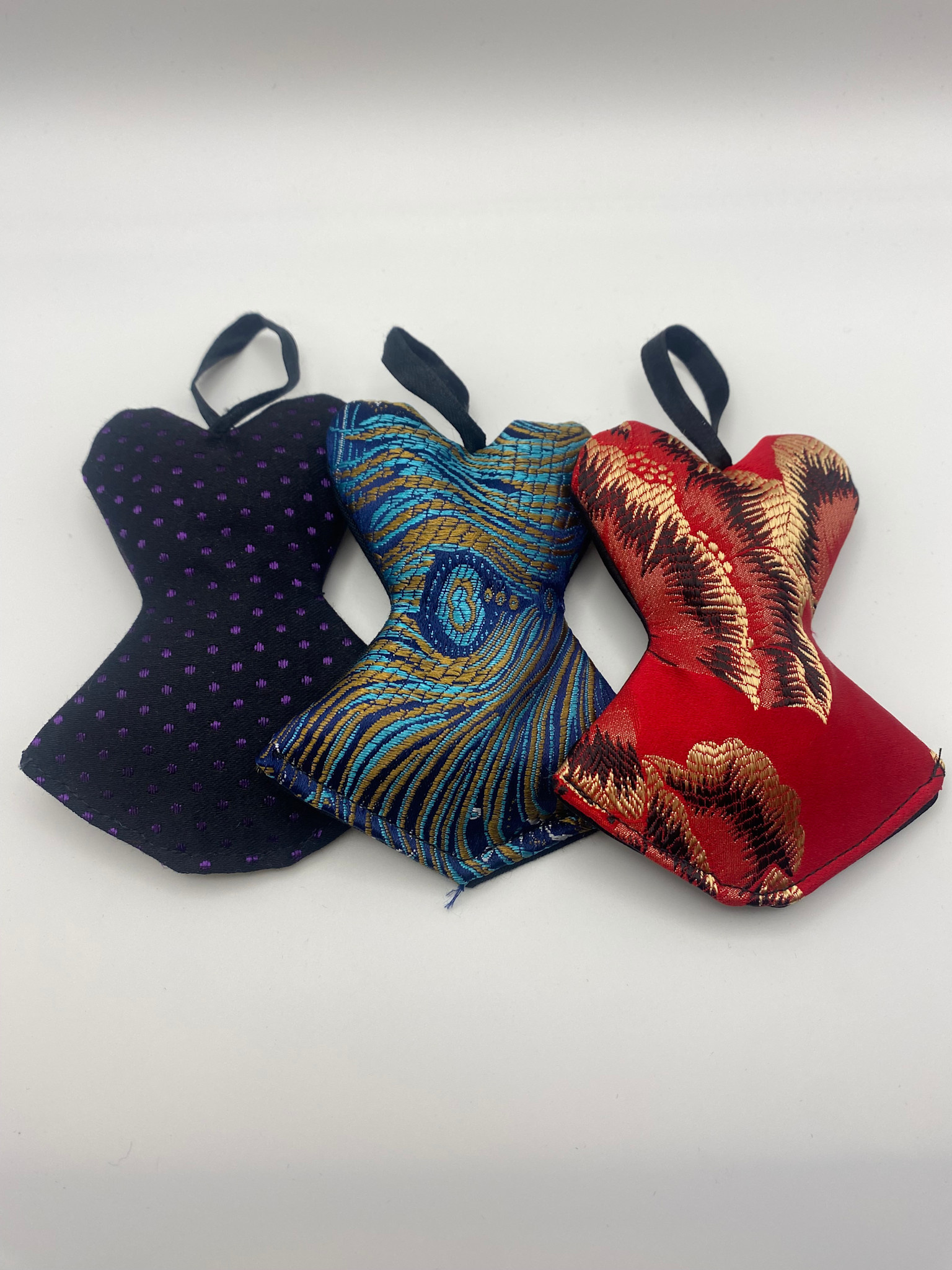 These charming corset ornaments are made with fabric scraps and filled with lavender!