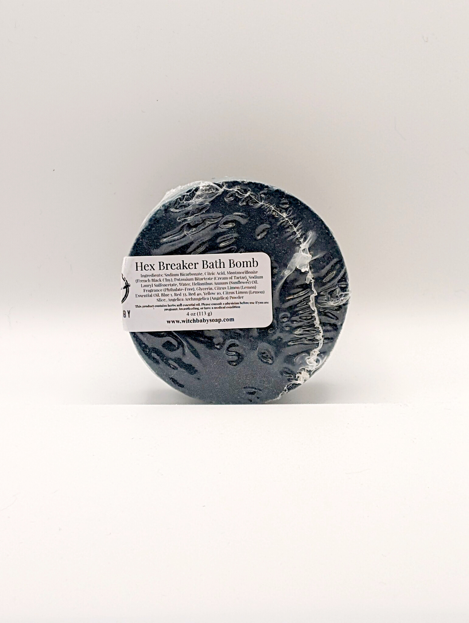 Drop this banishing black Hex Breaker Bath Bomb for a cleansing soak that will send even the nastiest hexes and curses down the drain. Curse breaking angelica and purifying lemon are hand pressed into this bath bomb for a bathing experience that is uplifting and refreshing.