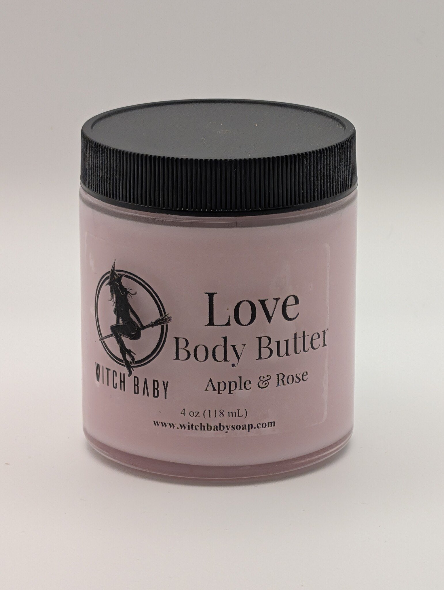Love Body Butter is self love in a jar. It's a Venusian blend of freshly bloomed roses and sweet juicy pink lady apples that invites you to love yourself. This alluring pink butter is topped with soothing rose quartz infusing your skin with the vibration of love.