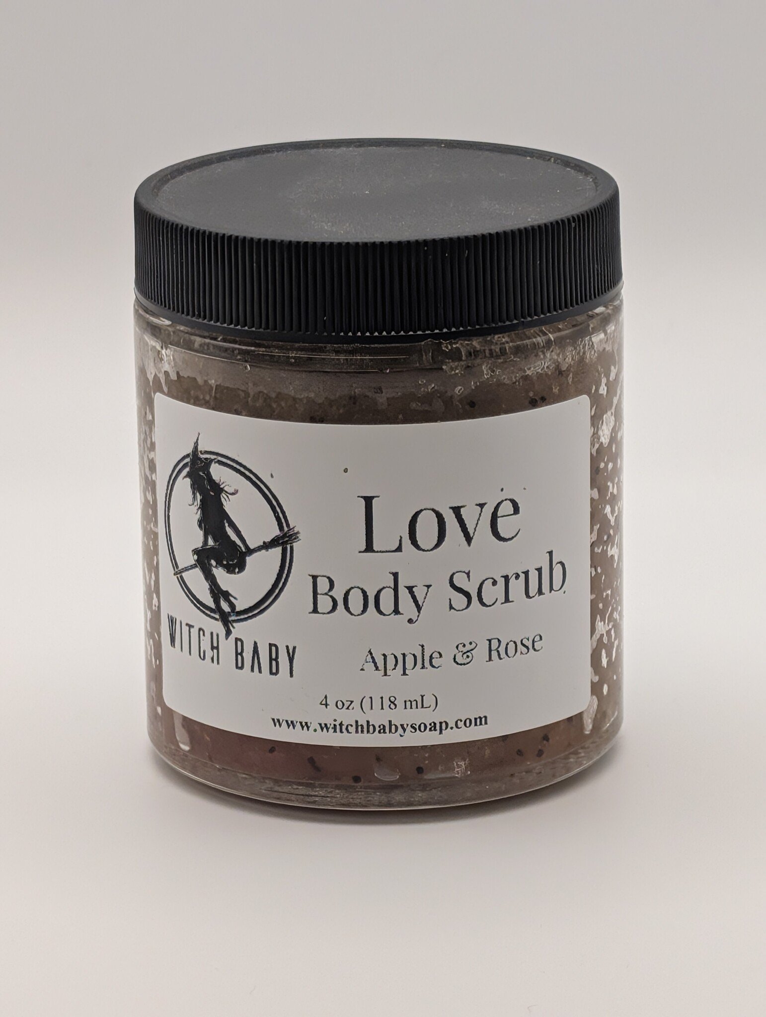 Love Body Butter is self love in a jar. It's a Venusian blend of freshly bloomed roses and sweet juicy pink lady apples that invites you to love yourself. A base of apple purée makes this the perfect scrub for someone who doesn't like oil based scrubs. The combination of mineral rich beet root, antioxidant rich roses and apples, moisturizing sunflower oil, and exfoliating poppy seeds makes this superfood for your skin.