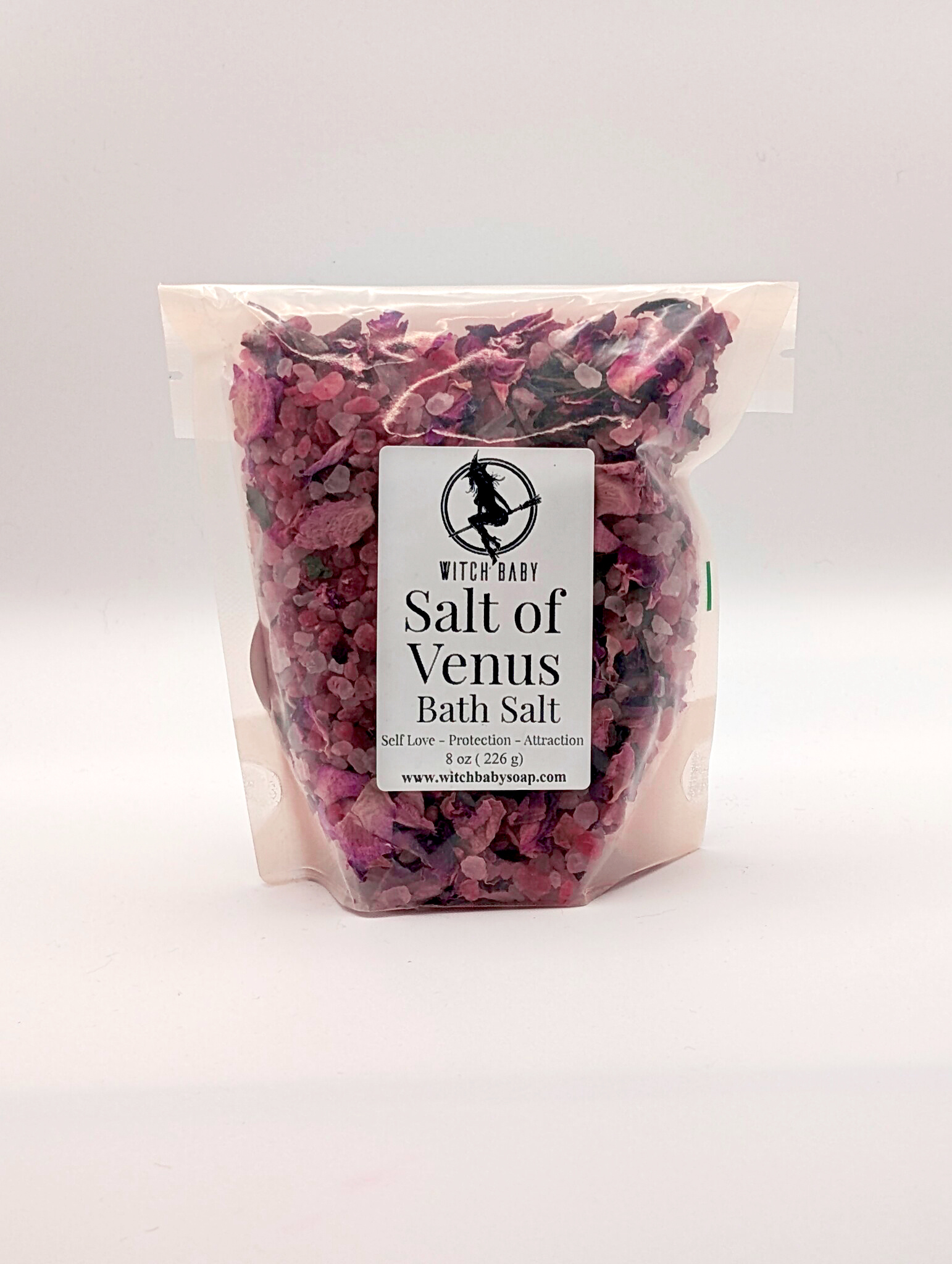 Salt of Venus is a bath salt that can be used in any bath rituals to promote self love, attract love, and raise your vibration to the frequency of love. It’s an unscented hand blended mix of gentle Venusian pink roses to promote and attract love, pure pink Himalayan salt used in love spells, and protective sunny peony flowers for love magic that works in your highest and best interest. For basic use - sprinkle a few capfuls into warm bath water and soak while envisioning pink energy radiating from your heart center.